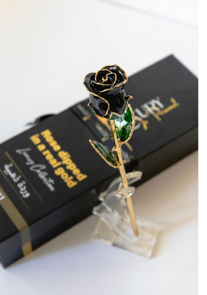 The moment the 24K Gold Forever Rose Black arrives at the door — the elegant black box with the black ribbon already says that something extraordinary is inside. The crystal stand gives the rose the place it truly deserves, and the certificate of authenticity confirms that every golden detail is genuine. No wrapping, no stress, no compromise — just pure luxury arriving perfectly ready to leave an impression that is never forgotten.